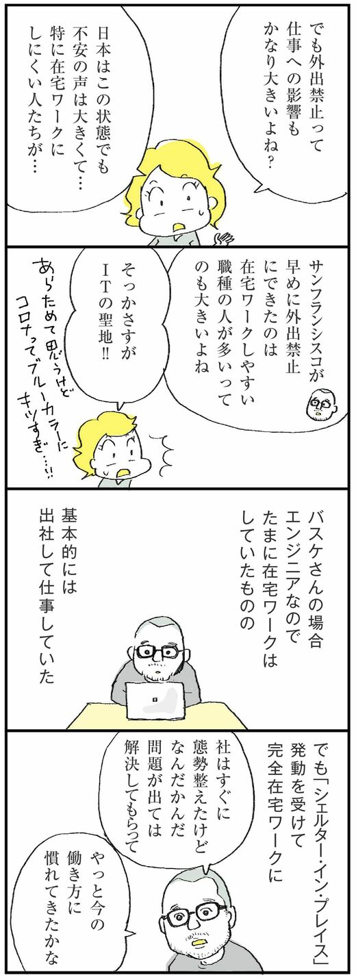 ライフ #ほしいのは「つかれない家族」 前の記事 次の記事 外出禁止の国に「日本はヤバい」と心配される訳 サンフランシスコの感染増加が緩やかな理由 3分で読める 公開日時:2020/04/11 05:30 ハラユキ イラストレーター、コミックエッセイスト フォロー 1/7 PAGES 2/7 PAGES 3/7 PAGES 外出禁止に早くできたのは、ITの聖地だったから! 次ページが続きます:【失業保険、補償はどうなってるの?】 4/7 PAGES 5/7 PAGES 6/7 PAGES 7/7 PAGES