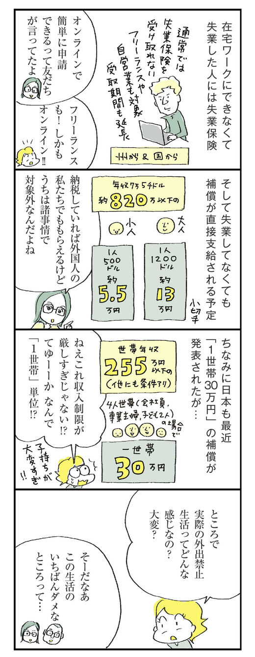 ライフ #ほしいのは「つかれない家族」 前の記事 次の記事 外出禁止の国に「日本はヤバい」と心配される訳 サンフランシスコの感染増加が緩やかな理由 3分で読める 公開日時:2020/04/11 05:30 ハラユキ イラストレーター、コミックエッセイスト フォロー 1/7 PAGES 2/7 PAGES 3/7 PAGES 4/7 PAGES アメリカの失業保険・補償は… 次ページが続きます:【友人が思う、外出禁止生活のダメなところ】 5/7 PAGES 6/7 PAGES 7/7 PAGES