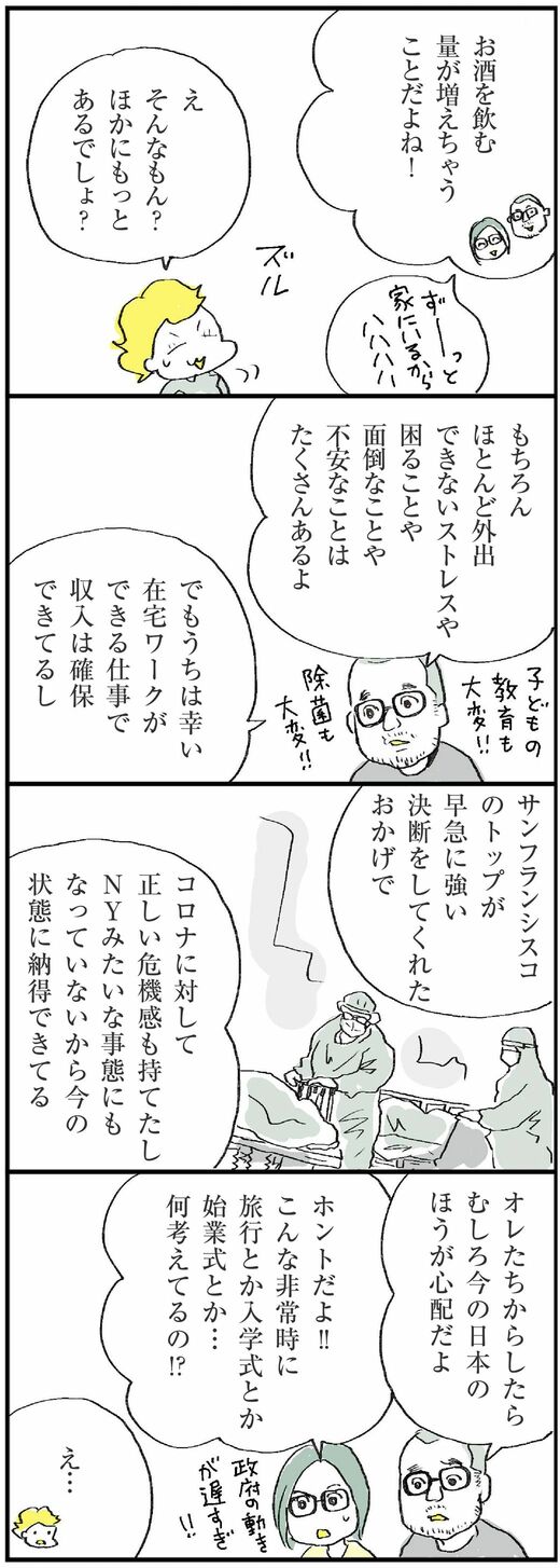 ライフ #ほしいのは「つかれない家族」 前の記事 次の記事 外出禁止の国に「日本はヤバい」と心配される訳 サンフランシスコの感染増加が緩やかな理由 3分で読める 公開日時:2020/04/11 05:30 ハラユキ イラストレーター、コミックエッセイスト フォロー 1/7 PAGES 2/7 PAGES 3/7 PAGES 4/7 PAGES 5/7 PAGES 友人夫婦は今の状況に納得できている 次ページが続きます:【心配される現在の日本…】 6/7 PAGES 7/7 PAGES