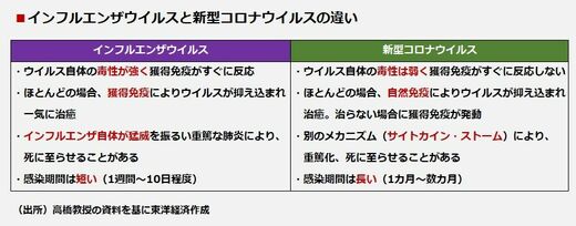 ――新型コロナウイルスとインフルエンザウイルスの違いをご説明ください。
