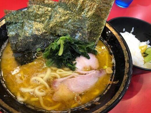 横浜家系ラーメン。1974年創業の「吉村家」(当時は新杉田駅近く)を源流とし、その弟子や孫弟子を中心に神奈川県を中心に広がっていった豚骨醤油ラーメンだ。濃厚な豚骨スープに醤油を強めに利かせ、上には鶏油をかける。トッピングはチャーシュー、ほうれん草、ネギ、ノリ3枚がお決まりだ。