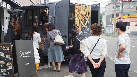 ある平日の午前中、札幌の地下鉄・麻生駅から徒歩数分のところにあるZIZI COFFEE(ジジコーヒー)の店先に、ひとり、ふたりと人が並び始めた。彼ら、彼女らのお目当ては、北海道・美唄発のスタートアップ、ASOMBROSO(アソンブロッソ)が作るフライドポテトだ。