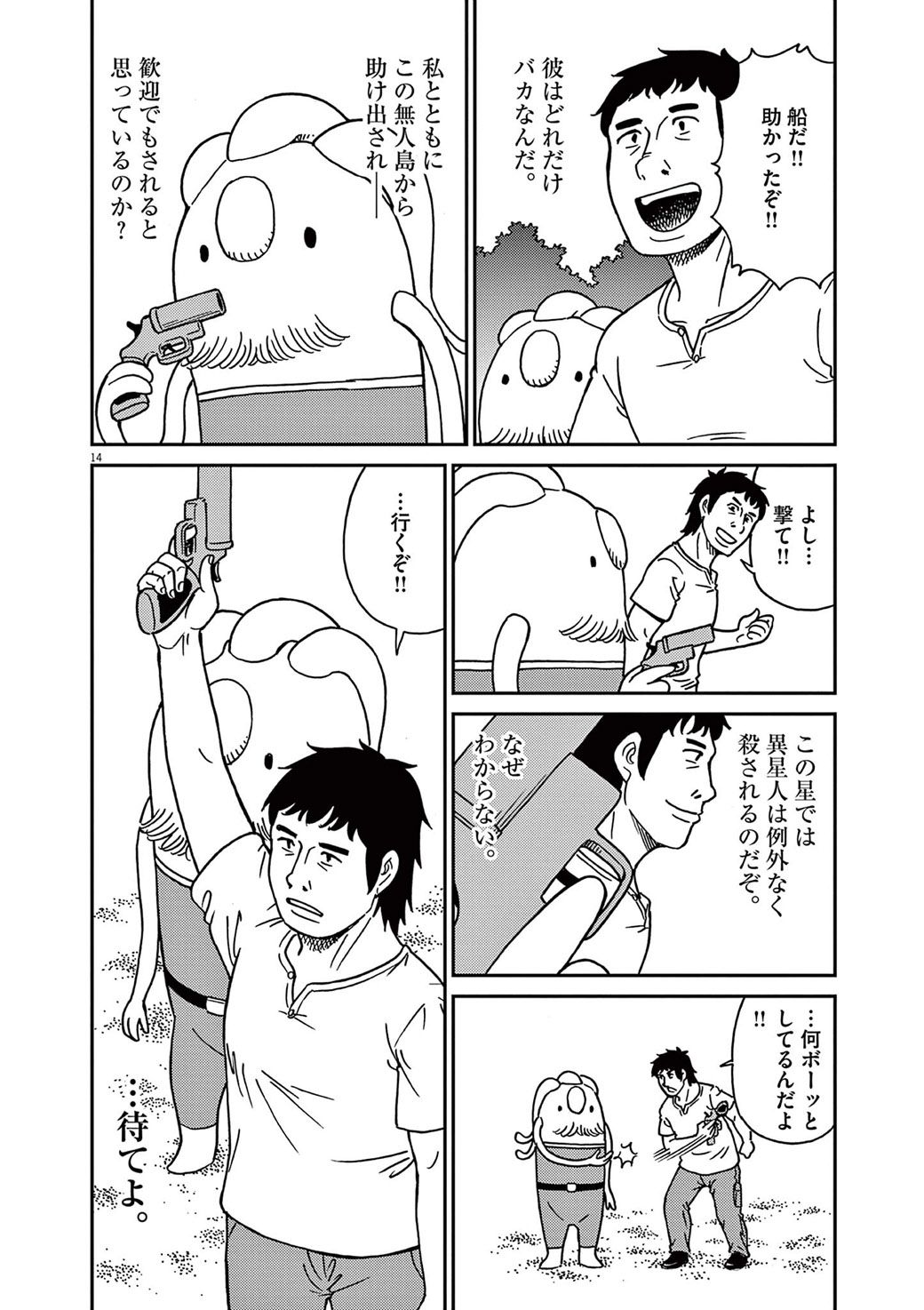 あっと驚く"まさかの結末"…。無人島で《不時着した宇宙人》に遭遇した一部始終 漫画「じんちく以外」(第2集 第10話)