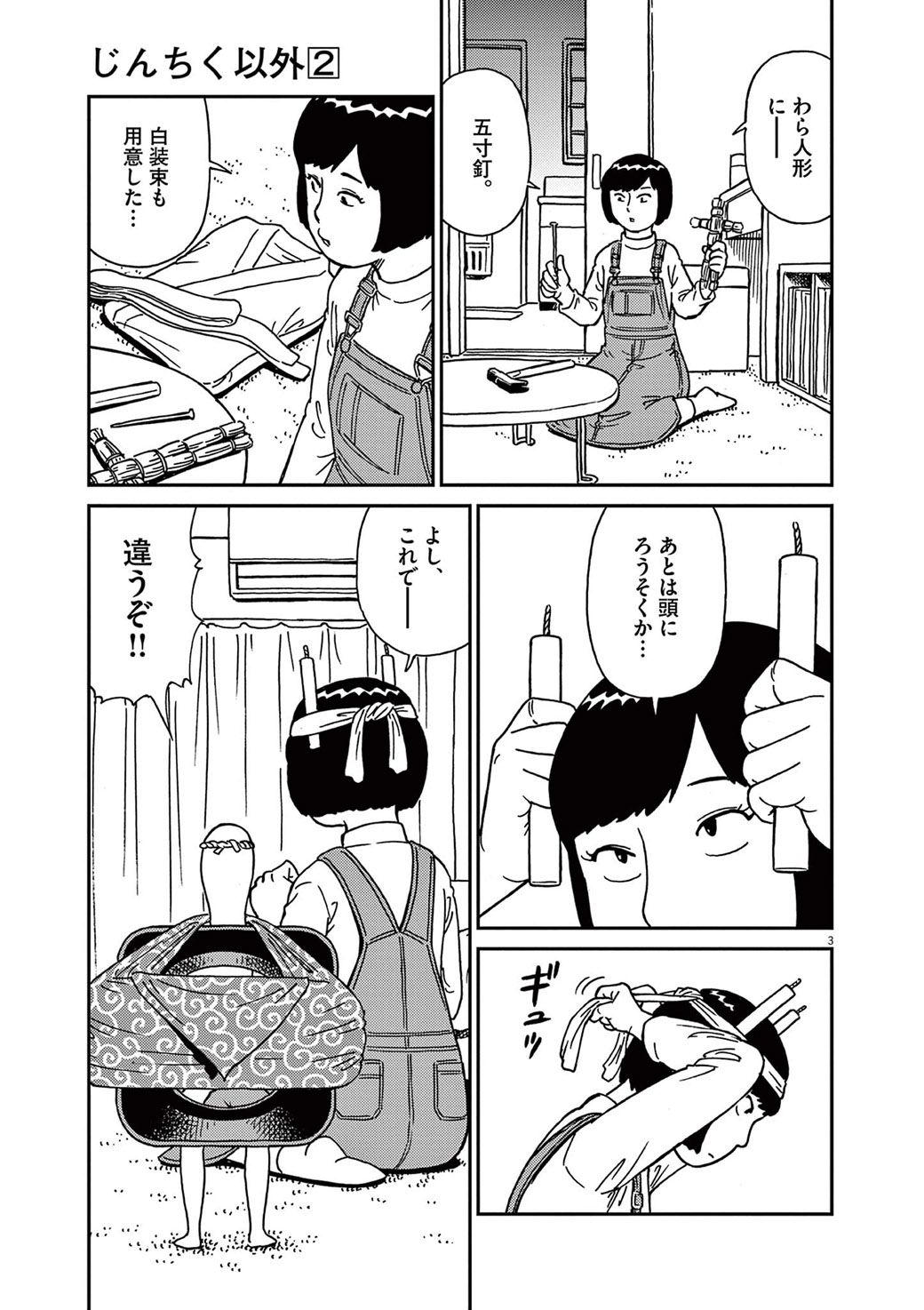 わら人形に白装束…「呪う準備」完了!と思いきや…乱入してきた"まさかの物体" 漫画「じんちく以外」(第2集 第14話)