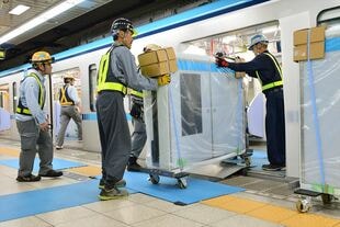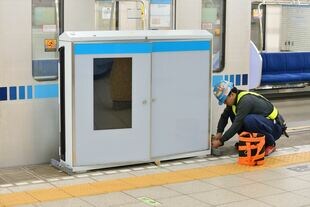 作業は午前1時過ぎに始まり、約50人の作業員が事前にホーム上に開けられた穴へと手際よくホームドアを取り付けていく。すべてのホームドアの固定を終え、輸送用の電車が走り去ったのは午前3時過ぎ。取り付け後の確認作業はあるものの、設置自体はわずか2時間ほどで完了した。