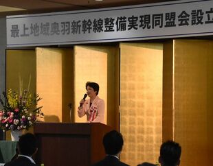 このような地元の危機感を背景に、山形県の吉村知事は2期目の最終年度の2016年5月、「山形県奥羽・羽越新幹線整備実現同盟」を設立し、県、国会議員、県議会、市町村、市町村議会、経済界など65者による「オール山形」での建設促進体制を構築した。