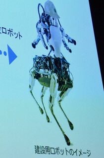 さらに岡本専務が披露したのが、上半身はアトラス、下半身はスポット・ミニという「ケンタウロス」のようなロボットの構想だ。「4足による安定性、4つの手による(動きの)多様性を持った、万能建設ロボットの開発を目指す」(同)。