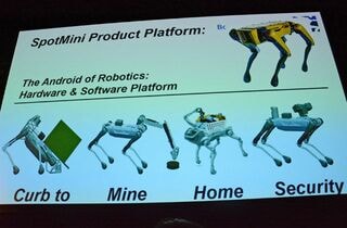 レイバート氏は、「このロボットを(スマホOSの)アンドロイドのようなプラットフォームにする」という構想を明かした。ユーザーは、スポット・ミニにカメラやアームといったパーツを組み付けたり、ソフトウエアの仕様を変えたりしながら、人間の指示に従ってさまざまな用途に使えるようになるという。