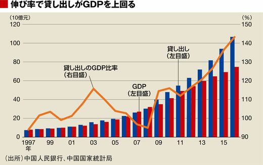 たとえば、民間貸出とGDP(国内総生産)を比較してみると、今の中国のように、貸し出しの伸び率がGDPの伸び率を大きく上回るときにバブルが崩壊することは歴史の中の多くの出来事が証明している。