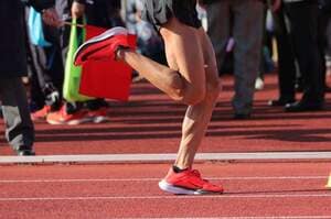 フルマラソンの終盤では、たいていの選手は疲れて腰が落ち、かかとから着地してぺたぺた走るようになるのですが、福岡国際マラソンでの大迫選手の写真をよく見ると、ラスト400mという場面でも、ヴェイパーフライ4%の特徴を活かしてかかとを浮かせたまま走り、まだ2位を狙っていました。