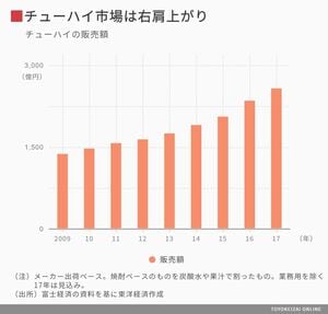 ただ、ビールメーカー各社にとっては、チューハイ市場が伸びることはビール類市場から消費者が流出することの裏返しだ。