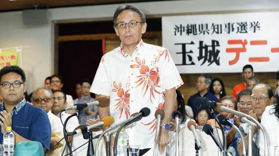 膵(すい)がんを公表し、知事として公務を続けながら治療していた翁長氏は、病状の悪化で8月8日に死去した。同氏は普天間飛行場の辺野古移設に強く反対して、4年前の知事選で自民支持の現職を破って当選したが、元自民党沖縄県連幹事長でもあり、政治的立場の違いを超えて移設反対派の支持を得てきた沖縄の実力者。共産・社民両党などが中心となる革新系勢力に地元の保守層も巻き込んだ「オール沖縄」が翁長県政を支えてきた。