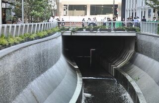 区によると、渋谷川は東京都が管理する河川だが、都の事務処理の特例に関する条例によって、清掃や占用申請許可などといった日常的な管理の権限については区に委譲されている。だが、河川自体に関する改修工事などは都の管理だという。今回の環境整備事業では、遊歩道から川が見えやすいように一部の護岸を傾斜の緩やかな「緩傾斜護岸」としたが、これも東京都の事業として行われた。