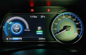 電気自動車にはリチウムイオンバッテリーが搭載されており、走行すると残量が減っていく。道路状況や速度にもよるが、基本的にはバッテリー残量が航続距離と直結している。走って行くとだんだん、1%、2%とバッテリー残量が減っていく様子が、ダッシュボードのディスプレイで確認できる。