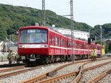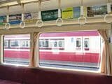 記事に戻る 引退2年、京急2000形にみる「看板列車の品格」 斬新デザインと高級感ある車内が人気だったの写真一覧 真正面から見た2000形=2018年2月(記者撮影) 1/49 下に画像が続きます 「く」の字に折れた前面の形状が特徴だ(記者撮影) 2/49