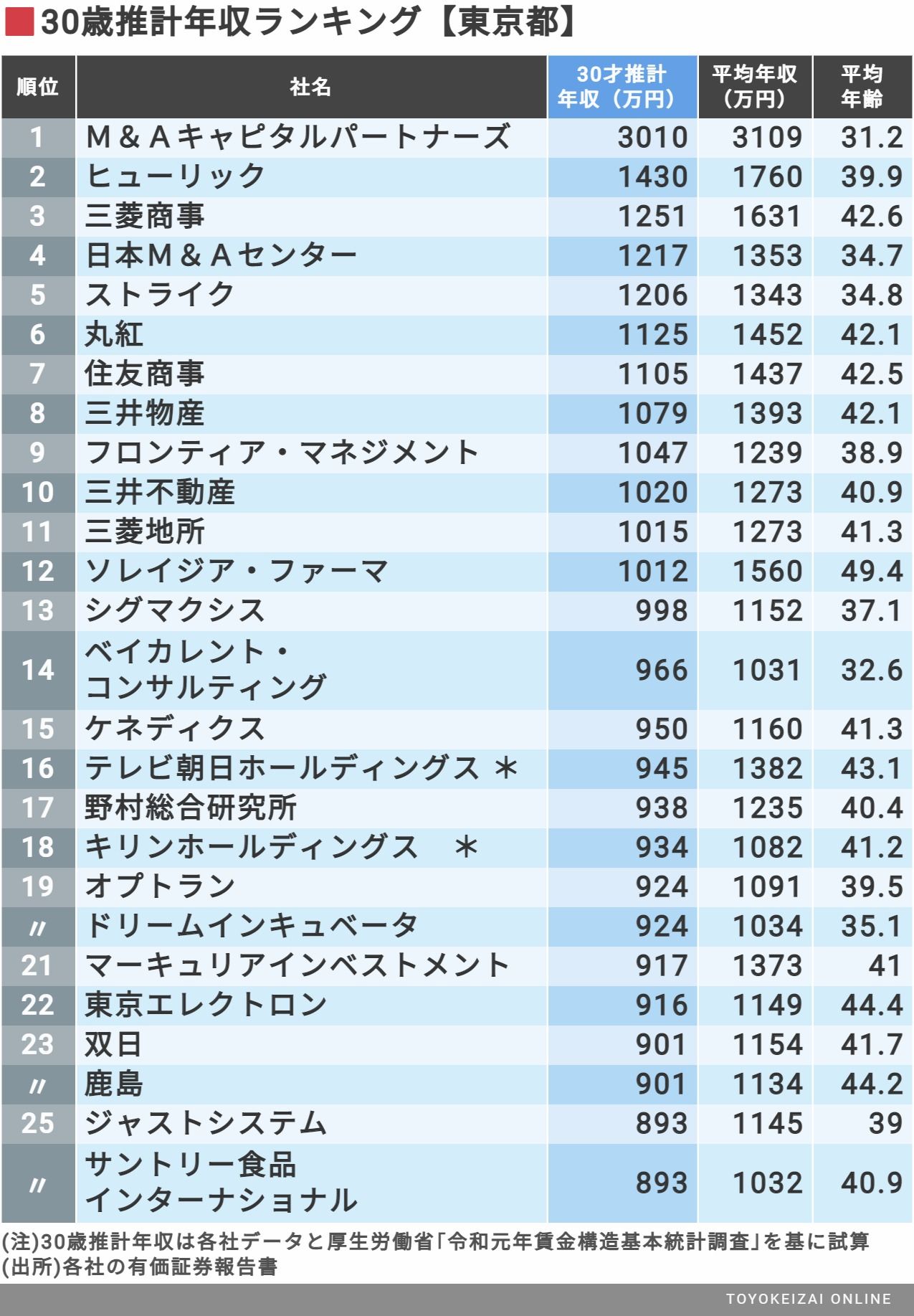 30歳年収「東京都トップ500社」最新ランキング 推計年収が1000万円以上の企業は何社あるかの写真一覧
