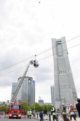 記事に戻る 横浜ロープウェー、高さ40m「異常時」どう救助? 海保救難艇からはしご車まで出動して合同訓練の写真一覧 救助要員を乗せ現場に向かう運営会社のゴムボート(記者撮影) 1/41 下に画像が続きます ゴムボートが現場に到着(記者撮影) 2/41
