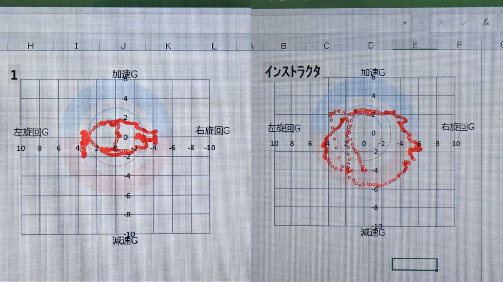 左が筆者、右が凄腕インストラクターのデータだ(筆者撮影)