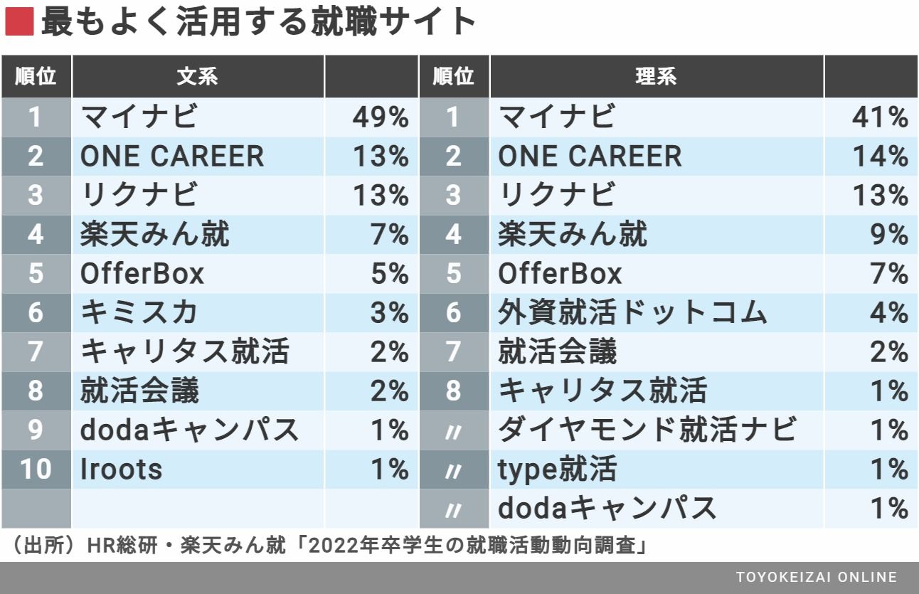 リクナビの退潮鮮明、「就活サイト」の人気が一変 マイナビ一強に、「ONE CAREER」の存在感増すの写真一覧