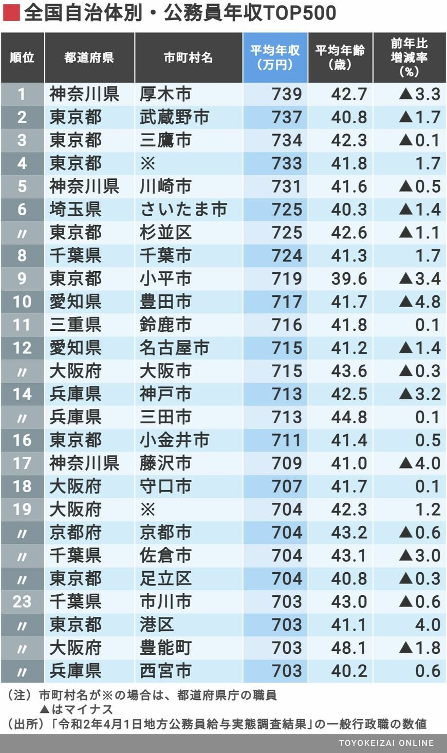 「公務員の年収」が高い自治体ランキングTOP500 平均年収は591万、上位に入ったのはどこかの写真一覧