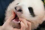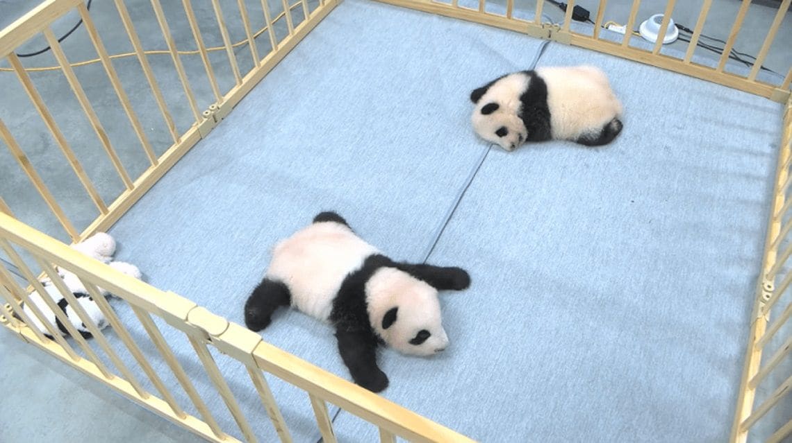 パンダは暑がり「産室22度」で過ごす双子の成長記 生後3カ月で5kg超、歯も生え寝返りも上手にの写真一覧