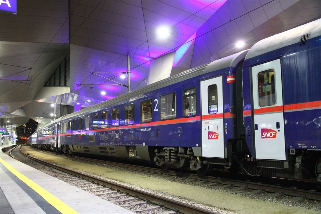 記事に戻る パリ―ウィーン間「夜行列車」14年ぶり復活の意義 環境問題が後押し、路線網拡大はさらに進むかの写真一覧 ウィーン中央駅で発車を待つパリ行きナイトジェット(筆者撮影) 1/19 下に画像が続きます ウィーン中央駅で発車を待つパリ行きナイトジェット(筆者撮影) 2/19