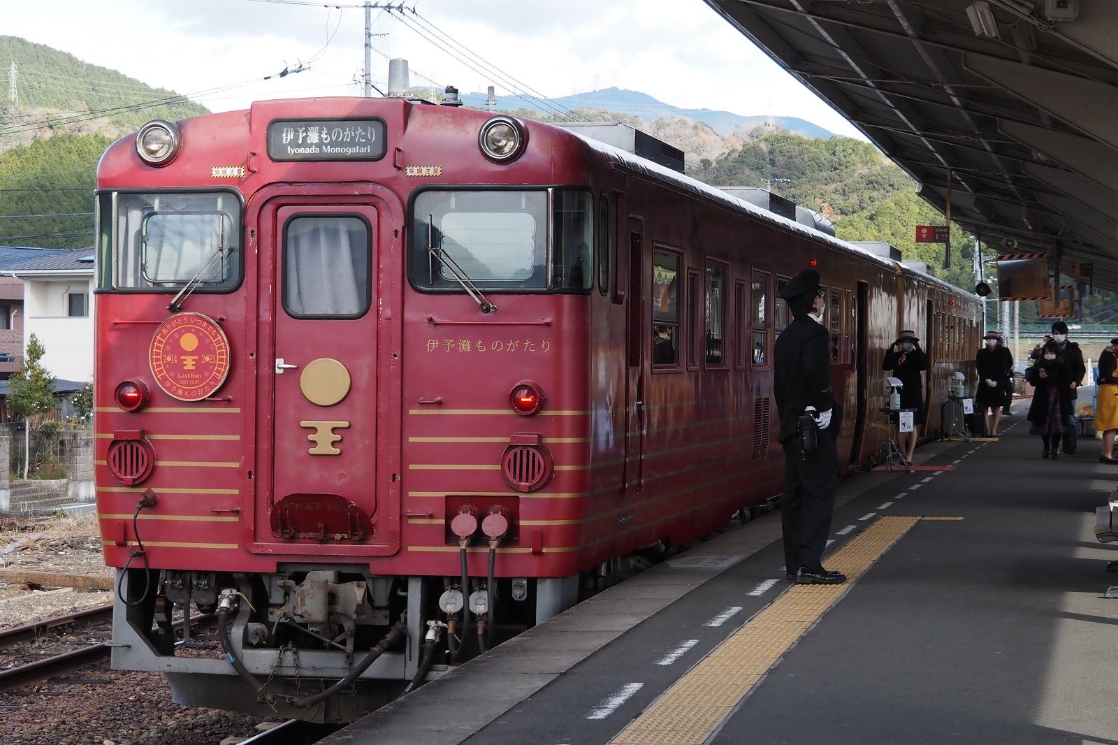 記事に戻る 2代目に継承、JR四国「伊予灘ものがたり」の秘訣 乗務員以外に人気支える「おもてなし役」の存在の写真一覧 2021年末に引退した「伊予灘ものがたり」の初代車両(撮影:伊原薫) 1/29 下に画像が続きます 伊予大洲駅で出発を待つ「伊予灘ものがたり」(撮影:伊原薫) 2/29