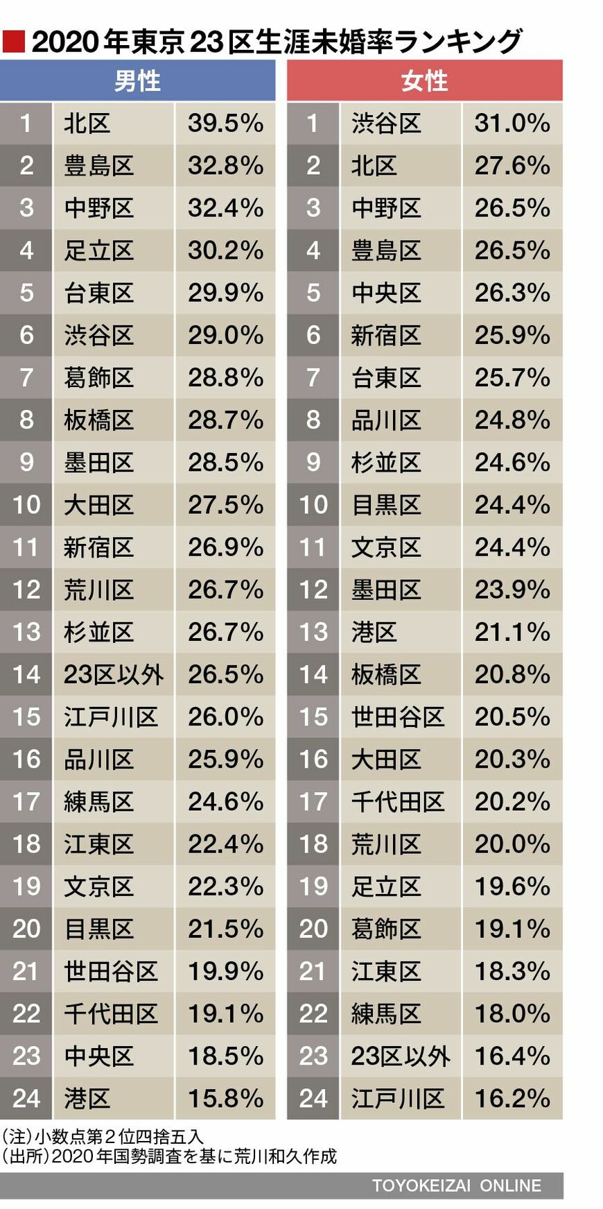 生涯未婚率なんと39%!「北区」が23区男性1位の謎 女性は「渋谷区」が20年間不動のトップの結果にの写真一覧