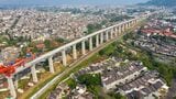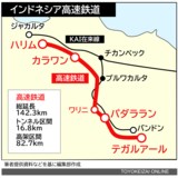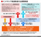 記事に戻る インドネシア高速鉄道、一転「国費投入」の理由 国営企業の出資が不足、「準高速」に変更も?の写真一覧 建設が進む高速鉄道(高架)のパダララン付近。KAI在来線と並行している(写真:Kaito Ishikawa) 1/11 下に画像が続きます 中国から輸入された東風4B型機関車に掲げられていたフラッグ。民間プロジェクトでありながら、ジョコ・ウィドド大統領の名の下に進められる国家プロジェクトと書いてある(筆者撮影) 2/11