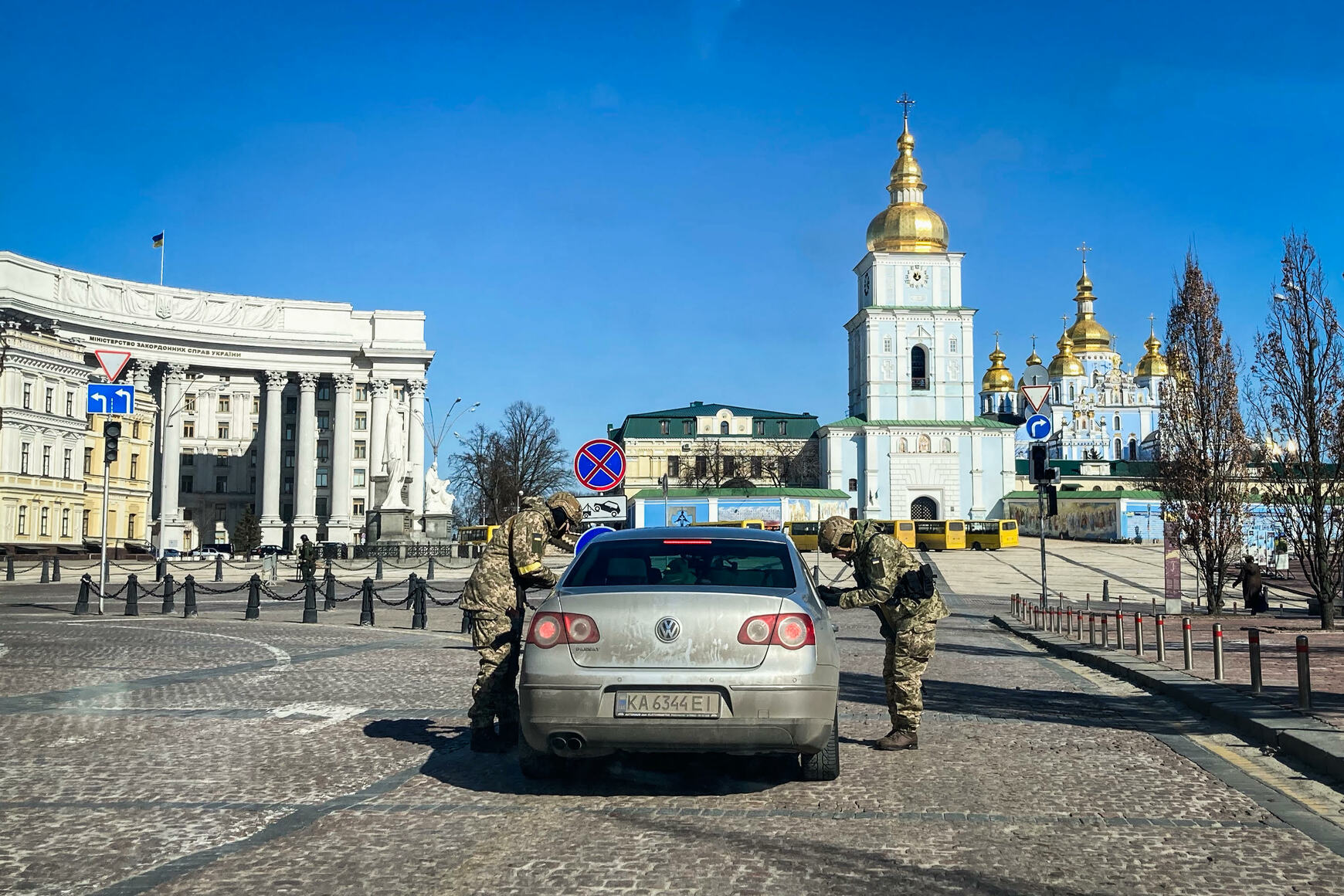 記事に戻る 日本人写真家が記録した"戦場"キエフの10日間 包囲された首都で生きる人々の悲痛な日常の写真一覧 中心部から北に6キロのキリビスカ通り。爆破されたトローリーバス(写真:筆者撮影) 1/8 下に画像が続きます 聖ミハイルの黄金ドーム修道院とウクライナ外務省(左)の前で検問をする兵士(写真:筆者撮影) 2/8