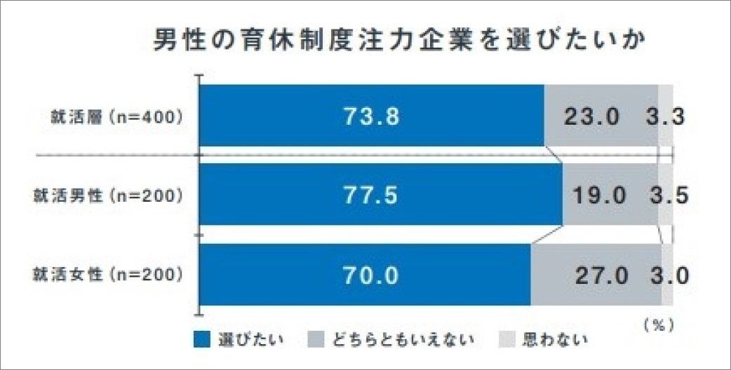 記事に戻る 「男性育休」促進は会社にとって「損」という大誤解 積水ハウスと技研製作所に推進の理由を聞いたの写真一覧 男性も育休を取得する時代に。企業側が育休の取得を推進する理由とメリットとは(写真:buritora/PIXTA) この記事の画像を見る(◯枚) 1/5 下に画像が続きます 7割を超える就活層が、男性育休注力企業を選びたいと答えている(出所)積水ハウス「男性育休白書2021特別編」 2/5