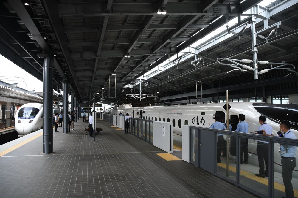 記事に戻る 西九州新幹線「対面乗換」で解決できない根本問題 円滑、安全な移動目指し武雄温泉駅で模擬訓練の写真一覧 ホームに並んだ「リレーかもめ」(左)と新幹線「かもめ」(記者撮影) 1/8 下に画像が続きます シミュレーションにはJR九州社員約300人が参加した(記者撮影) 2/8