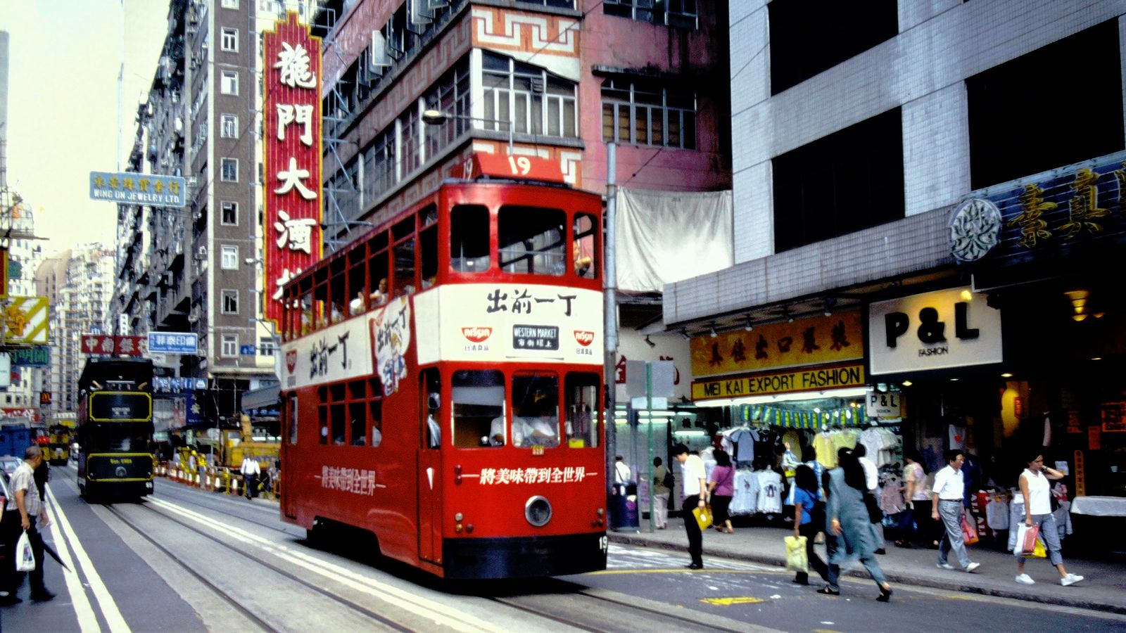 香港名物の2階建て路面電車。返還前も今もその姿はあまり変わらない(筆者撮影)