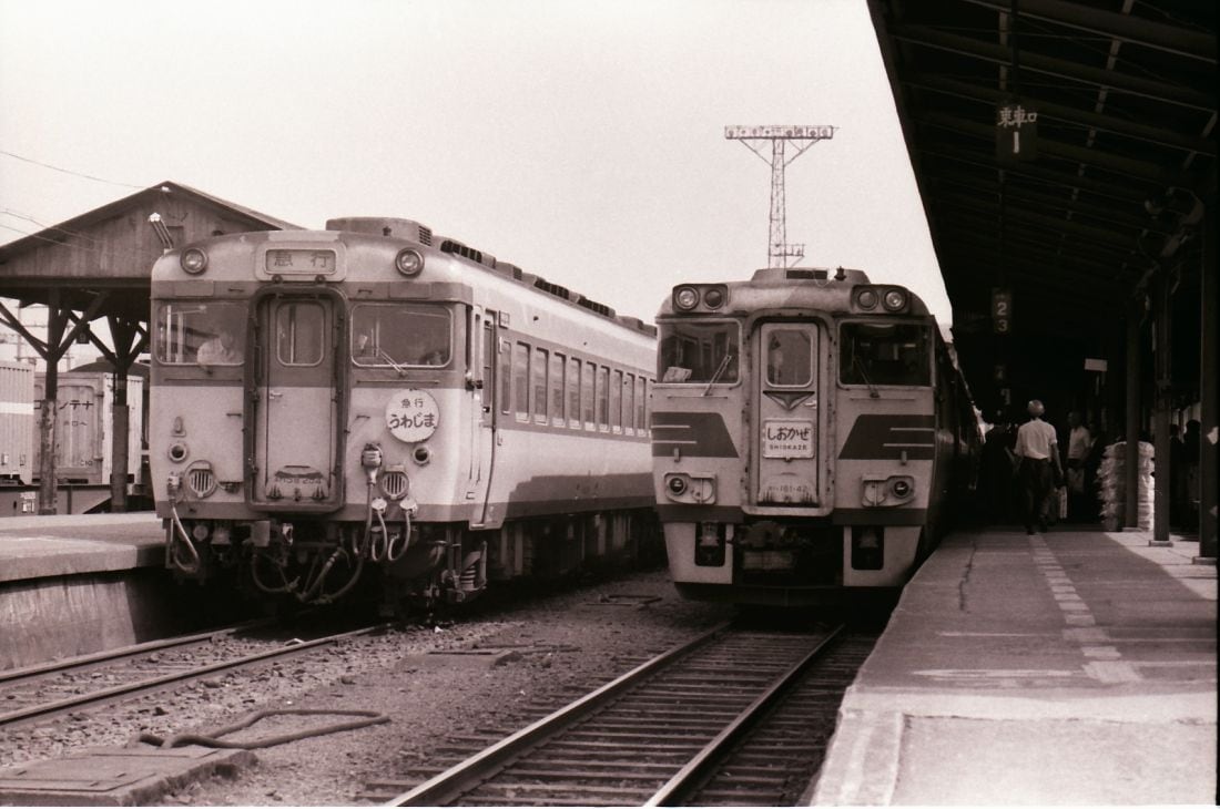 記事に戻る かつては"気動車王国"、四国の今昔「名車列伝」 非電化の国鉄時代から現在の振り子列車までの写真一覧 高松駅に停車する急行「うわじま」と特急「しおかぜ」(撮影:南正時) 1/113 下に画像が続きます 瀬戸内海沿いを走る予讃線の急行「うわじま」(撮影:南正時) 2/113