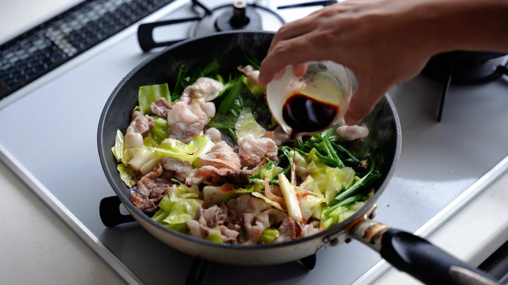 記事に戻る 強火も弱火もNG「肉野菜炒め」ベチャッとさせぬ技 甘辛いしょうゆ味がご飯に合う「ニラ豚」で挑戦の写真一覧 シャキシャキの「ニラ豚」の作り方を伝授します 1/18 下に画像が続きます キャベツは外側と内側で味が異なるので、クシ型に切るとバランスがとれます 2/18