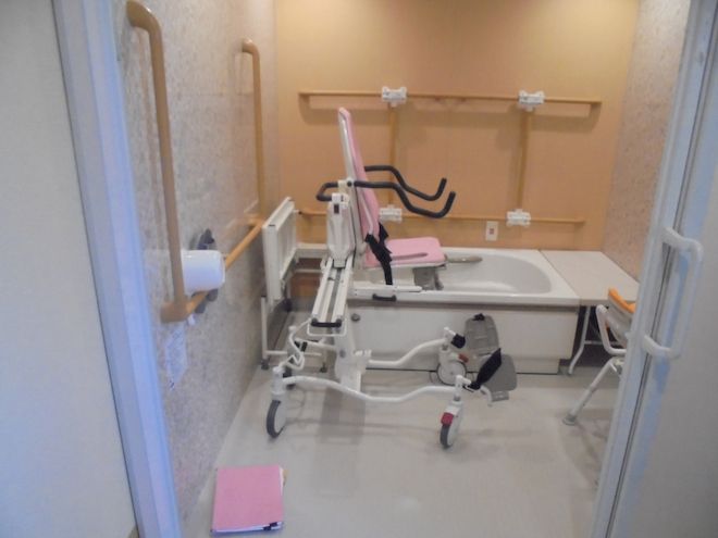 記事に戻る 「住まいの暖かさと健康」の意外と侮れない関係性 断熱性に優れた家のほうが在宅ワークも捗るの写真一覧 下に画像が続きます 介護施設の浴室の様子。このような充実した設備がある施設でサービスを受けられる期間は今後、短くなると予想され、だからこそ在宅介護ができる住まいの重要度が高まる(筆者撮影) 4/5