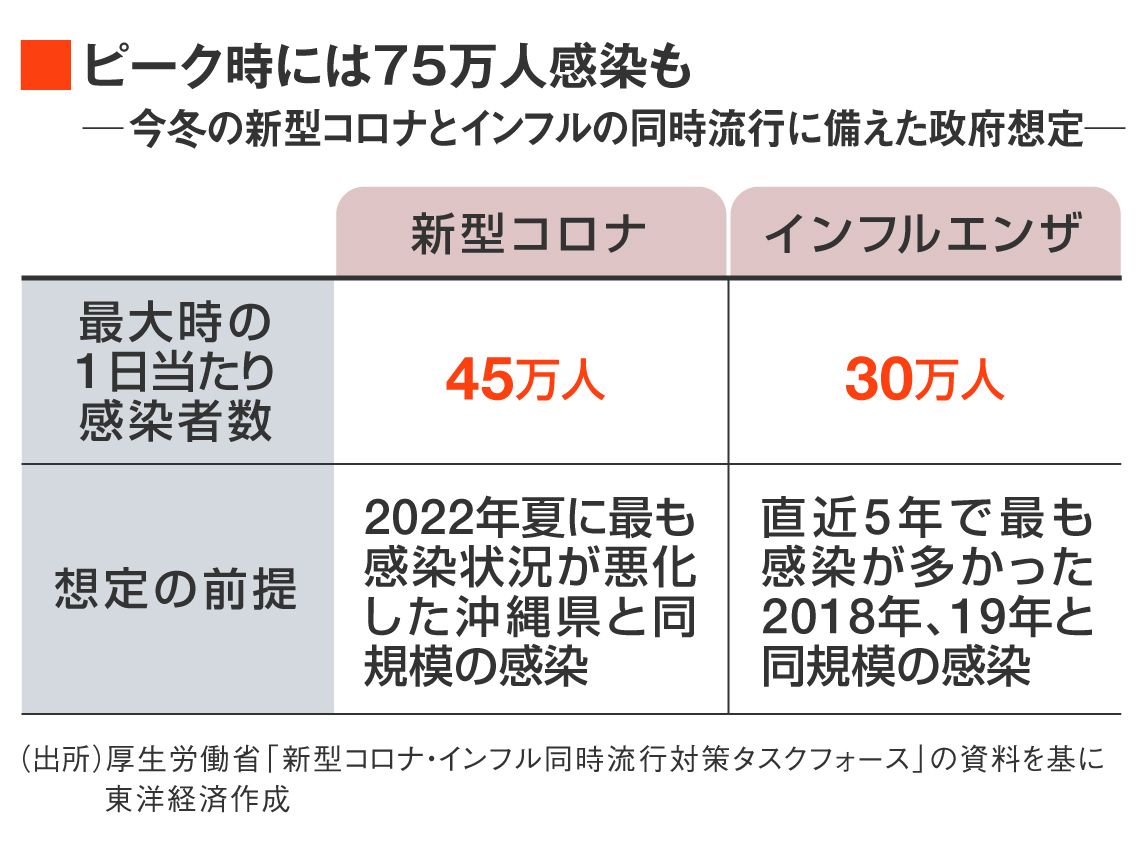 記事に戻る コロナとインフル「75万人感染」想定に尽きぬ不安 同時爆発に対する政府対応策の実効性は不透明の写真一覧 厚生労働省は、新型コロナとインフルが同時流行した場合、最悪のケースで感染者数は合計75万人に上るという想定を公表した(記者撮影) 1/4 下に画像が続きます 2/4