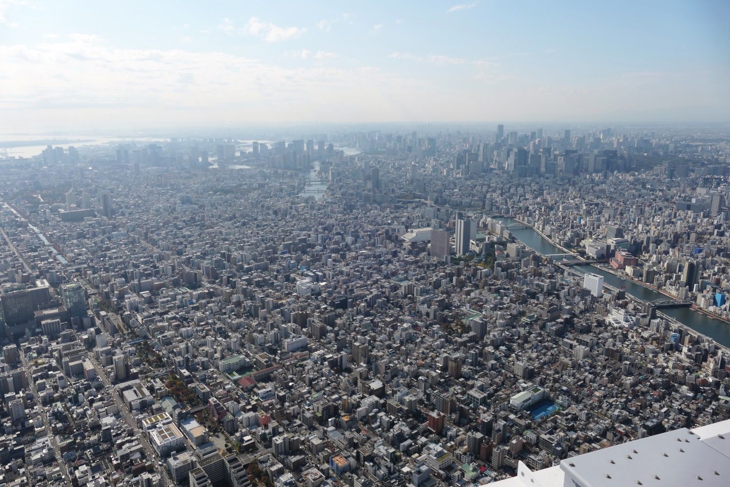 両国方面。左奥に東京湾が霞んで見える(記者撮影)