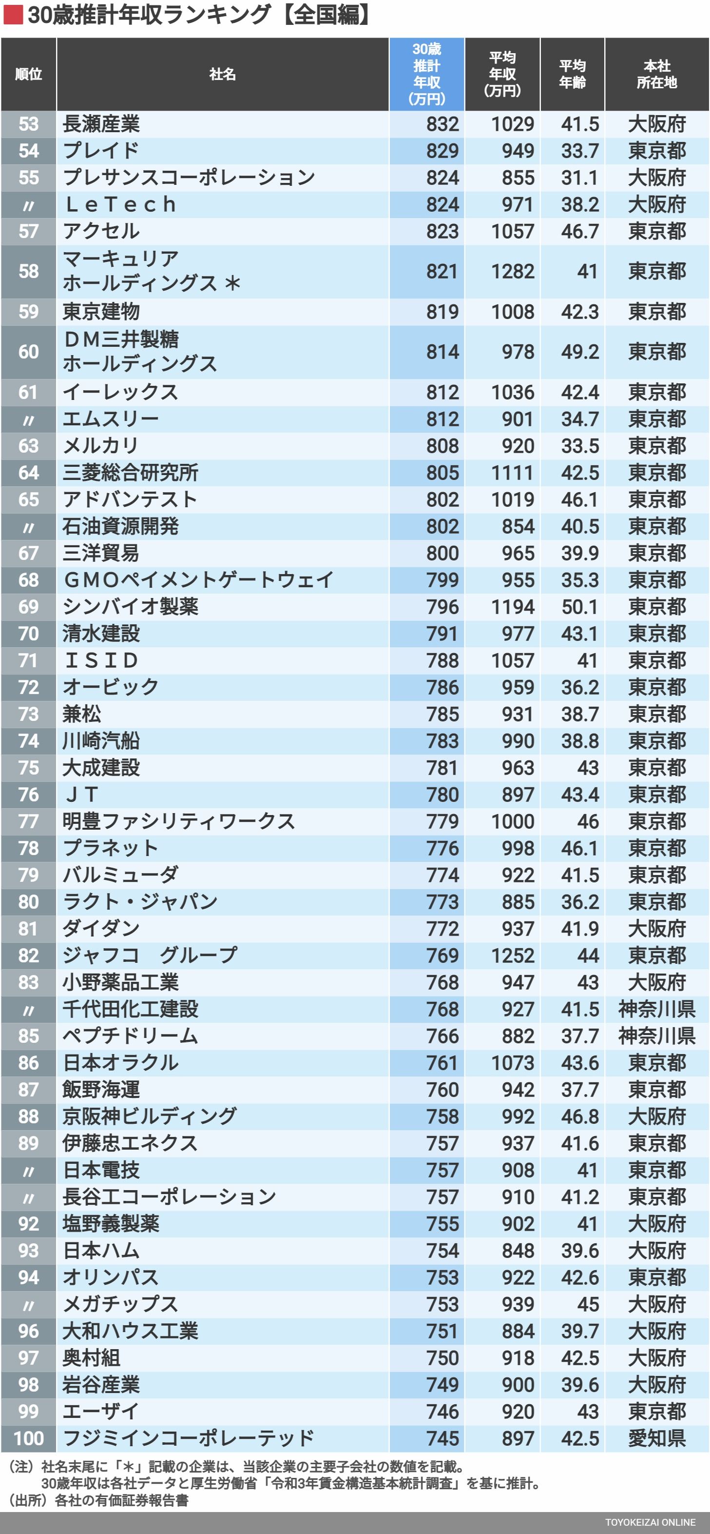 30歳年収が高い会社ランキング「全国トップ500」 トップは推計2542万円!1000万円以上は20社の写真一覧