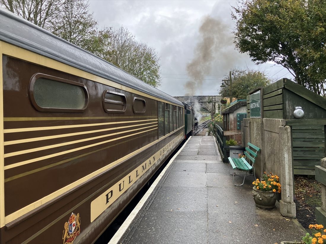 記事に戻る 英国の展望車「デボン・ベル」、波乱万丈の1世紀 誕生時は「救急車」、米国巡業後に帰国できずの写真一覧 下に画像が続きます 雨降る中を蒸気機関車に牽かれて走り去る「デボン・ベル」展望車(筆者撮影) 18/22