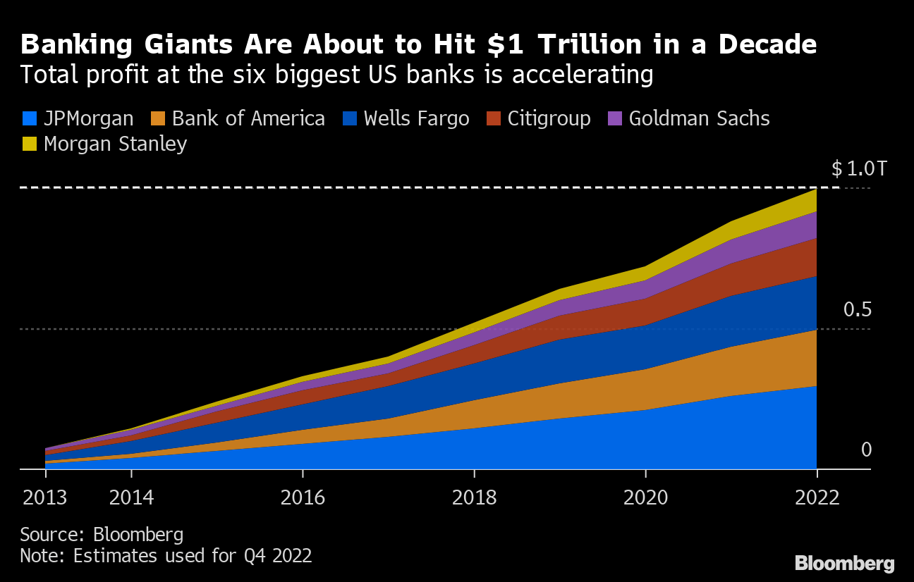 森羅万象飲み込む銀行という名の利益マシーン 米6大銀行、10年間の利益が初の1兆ドル載せにの写真一覧