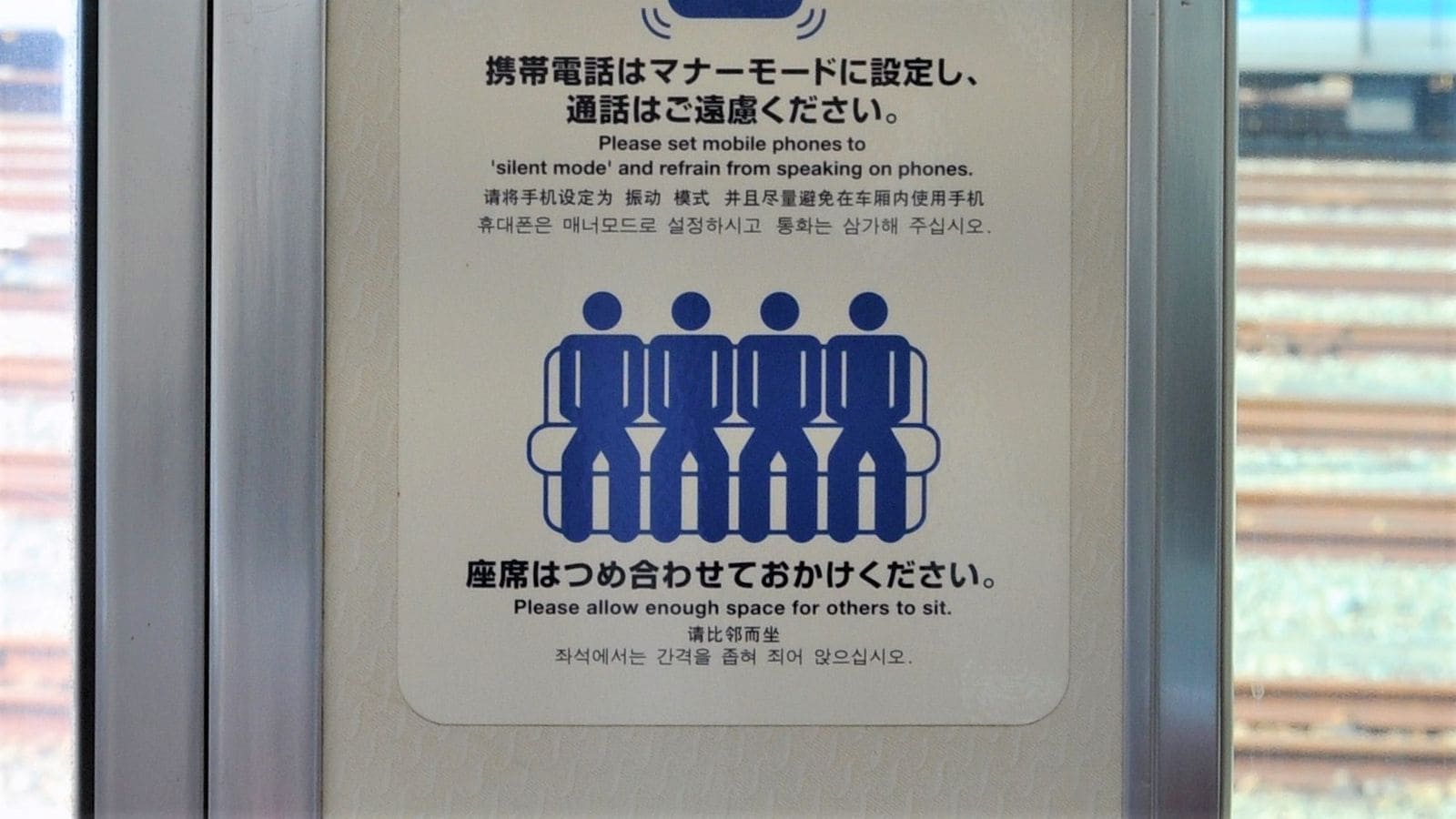 席を詰めて座るよう呼びかける電車内のステッカー(編集部撮影)