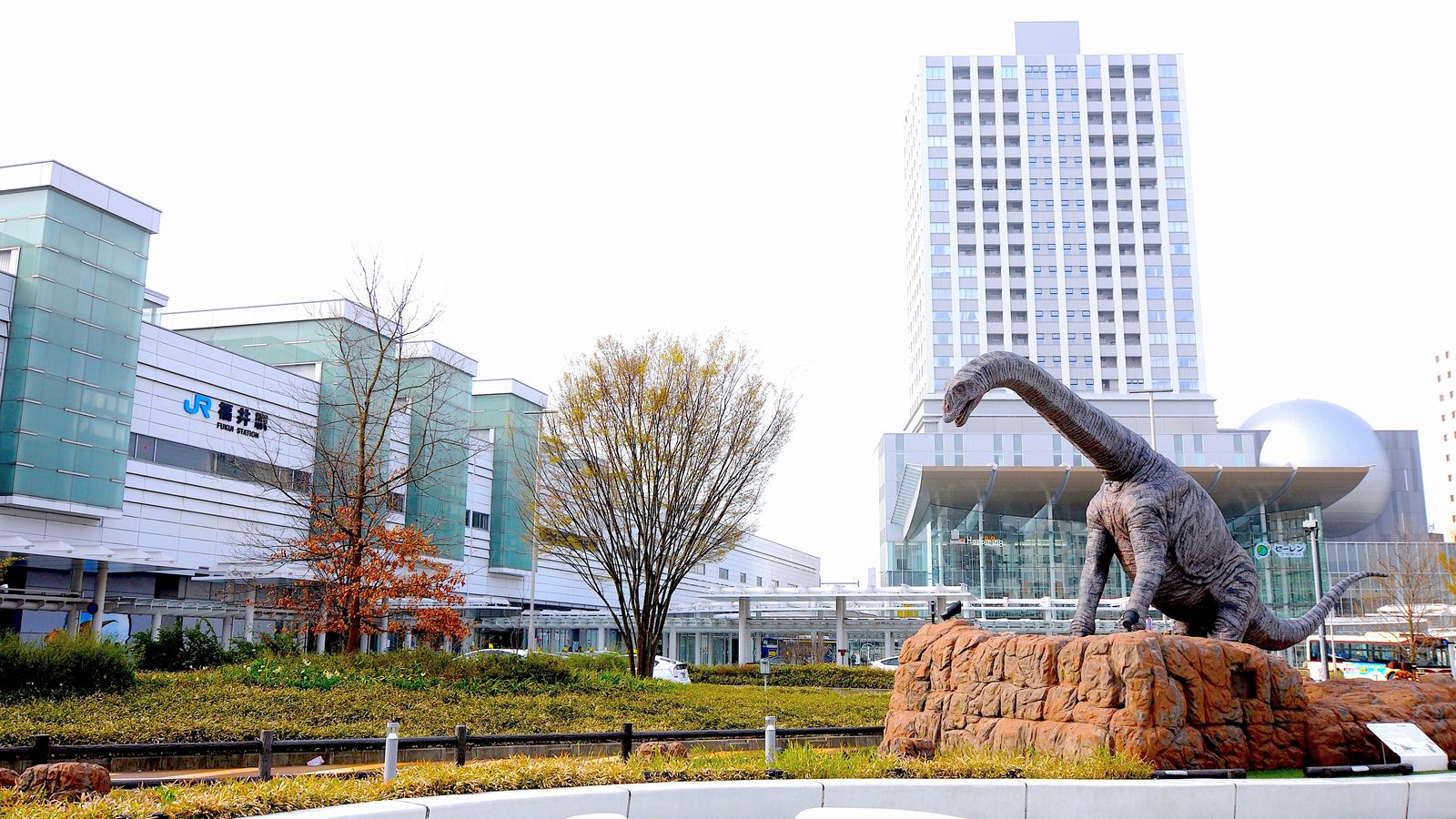 記事に戻る 福井駅、災禍を乗り越えた「不死鳥の街」の玄関口 空襲と地震、水害連続、鉄道開業時も災害が影響の写真一覧 福井駅西口には県内で恐竜の化石が多く発掘されていることにちなんだ動く恐竜モニュメントがある(筆者撮影) 1/9 下に画像が続きます 2016年の駅前広場再整備に伴って線路を延伸し、駅前広場に乗り入れた福井鉄道。名称も福井駅前から福井駅へと改称した(筆者撮影) 2/9