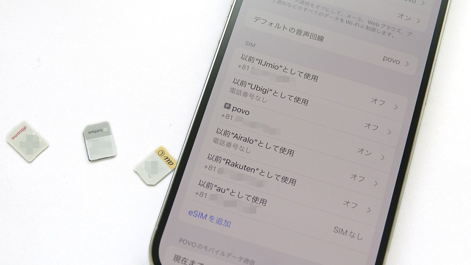 iPhone XS以降のiPhoneは、eSIMを使ったデュアルSIMに対応している。バックアップ回線を用意しておくにはぴったりの機能だ(筆者撮影)