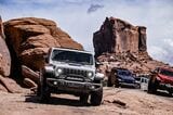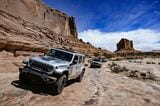 記事に戻る ラングラー4xe「20th特別仕様」悪路走行の妙技 「悪路を走る楽しみ」を残すPHEVのジープの写真一覧 新しい意匠の7スロットグリルとトリプルフープ・バンパーガードをそなえている(写真:Stellantisジャパン) 1/13 下に画像が続きます 50度のアプローチアングル、33度のブレークオーバーアングル、43度のデパーチャーアングルを誇る(写真:Stellantisジャパン) 2/13