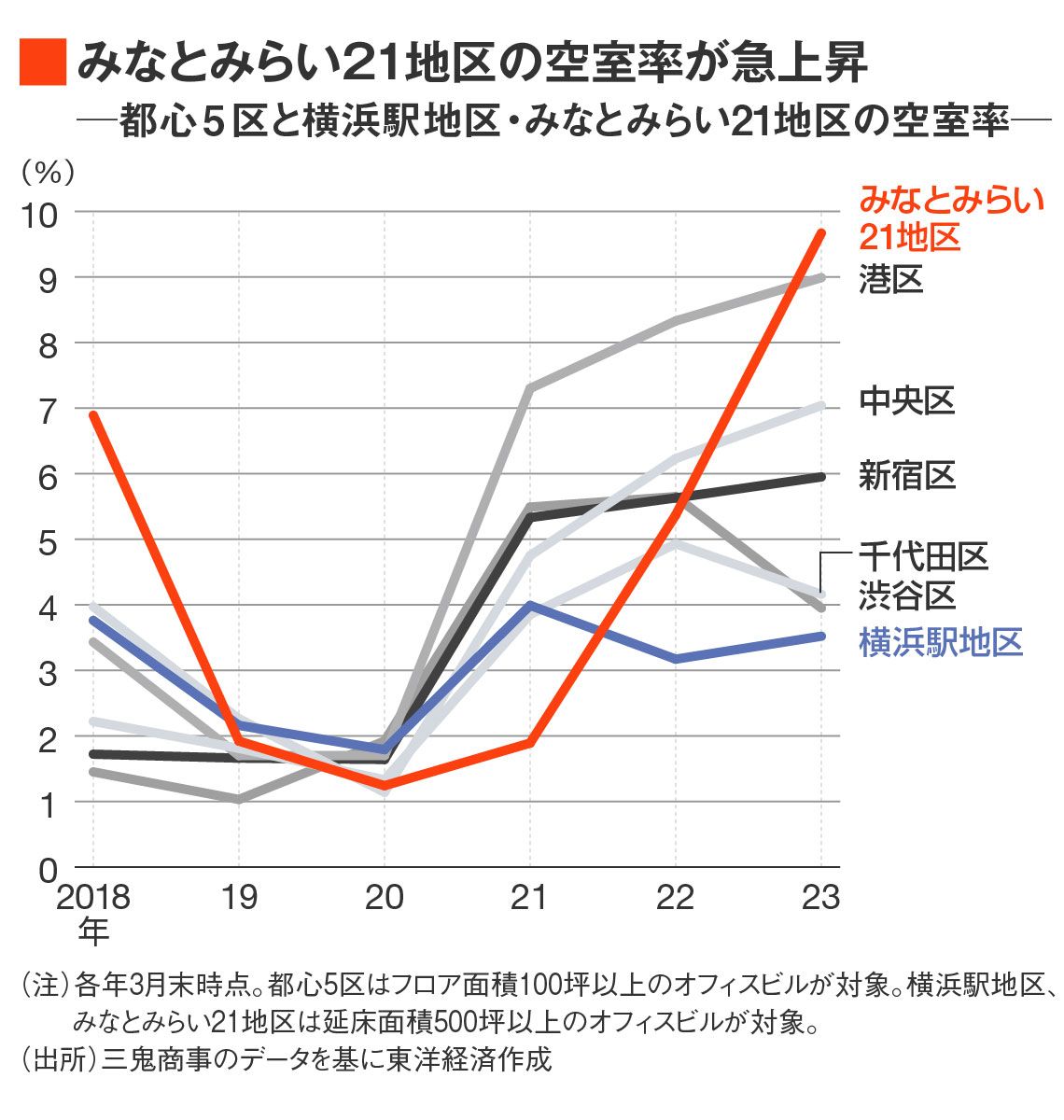 記事に戻る 横浜みなとみらいで進む「オフィス離れ」の超深刻 割安な「品川・汐留・晴海」に企業需要奪われるの写真一覧 みなとみらい21地区の空室率が急上昇している 1/3 下に画像が続きます 1万坪超の大規模オフィスビルがみとなみらい21地区に集中 2/3