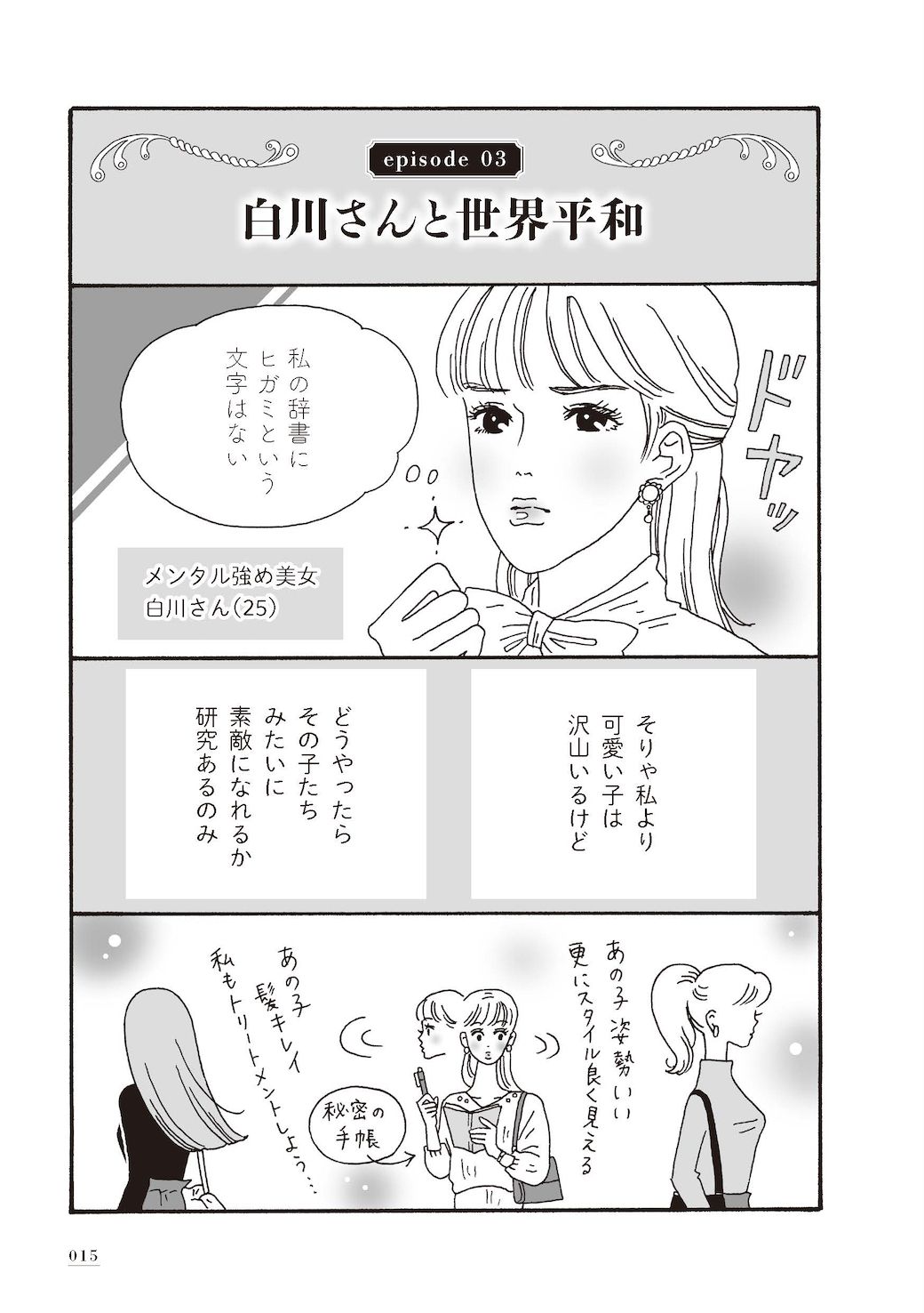 記事に戻る メンタル最強「美女・白川さん」の凄すぎる"名言" 悪口や嫌味に負けず幸せに生きる人の秘訣の写真一覧 周囲から悪口や嫌味を言われても意に介さず、強く美しく我が道をゆく主人公、白川さん(画像:『メンタル強め美女白川さん』より) 1/14 下に画像が続きます 周囲から悪口や嫌味を言われても意に介さず、強く美しく我が道をゆく主人公、白川さん(画像:『メンタル強め美女白川さん』より) 2/14