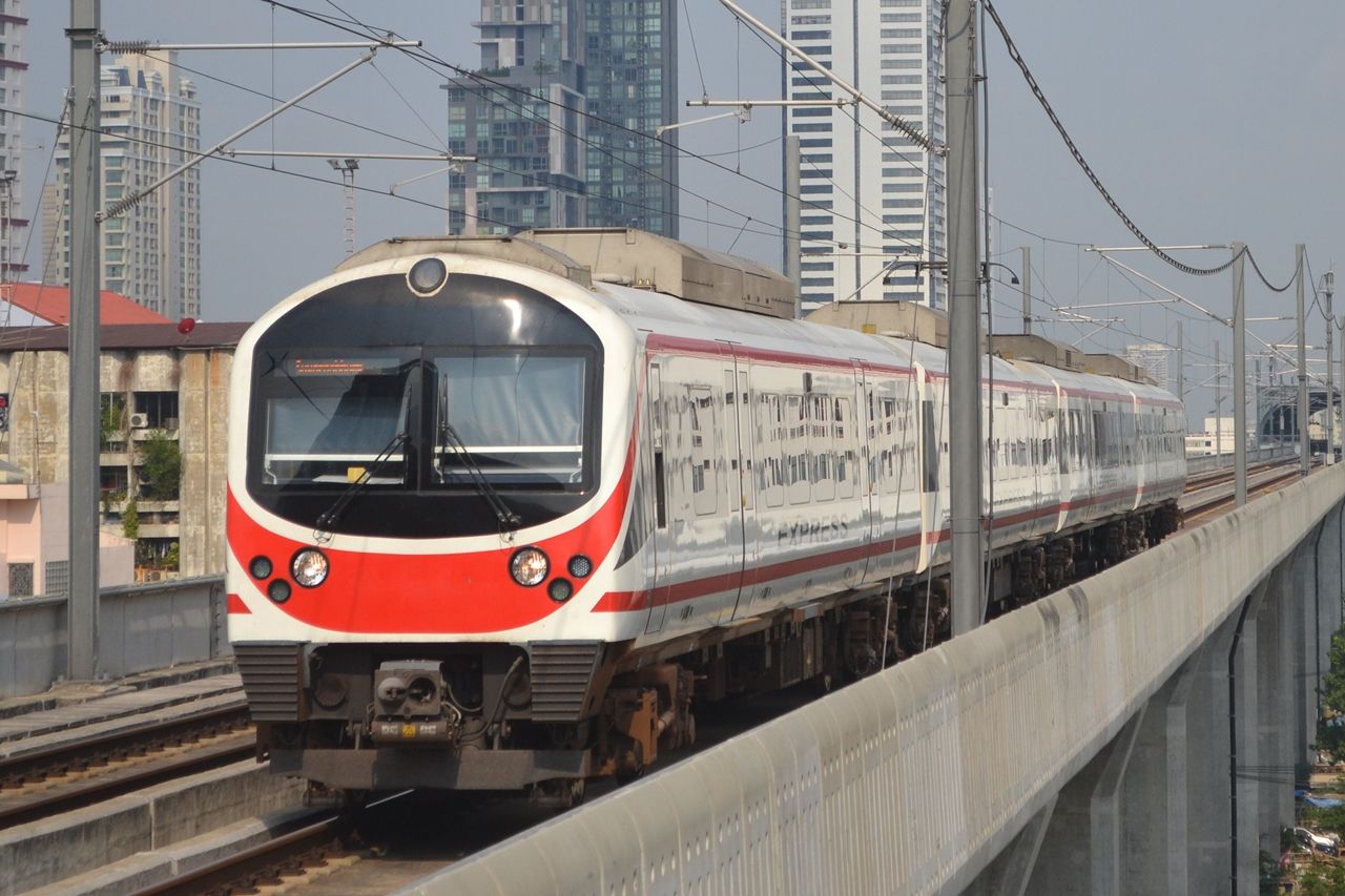 記事に戻る バンコクの鉄道「日本式システム輸出」苦闘の歴史 「上から目線」の技術押し売りはもう通用しないの写真一覧 下に画像が続きます エアポートレールリンクに導入されたシーメンス製の標準規格Desiro UKの急行用車両。SRT路線に組み込まれているが別線扱いのため標準軌を採用している。メンテナンス契約がなかったために不具合が多発した(筆者撮影) 21/22