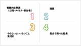 記事に戻る 「先延ばしやめたい!」すぐやる人に変わるメモ術 脳の性質を利用「やる気なし」でも行動する方法の写真一覧 下に画像が続きます 第4象限は空欄にしておき、会議後の行動をしながら埋めていく。 空欄をあえて作ることで、「空白」嫌いな脳に行動を起こさせる 4/4