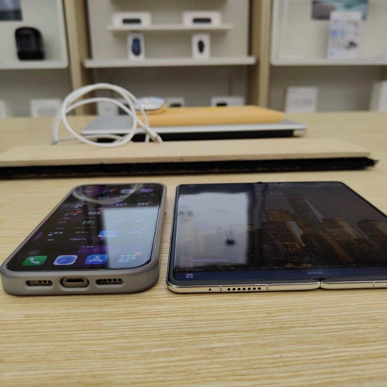 記事に戻る 【2023年】QOL爆あがり!近未来ガジェット3選 中国専門家が選ぶ買ってよかったハイテク家電の写真一覧 左がiPhone 13 Proで、右がHuawei Mate X3(筆者撮影) 1/8 下に画像が続きます 左がiPhone 13 Pro 右がHuawei Mate X3。見てくださいこの薄さ(著者撮影) 2/8